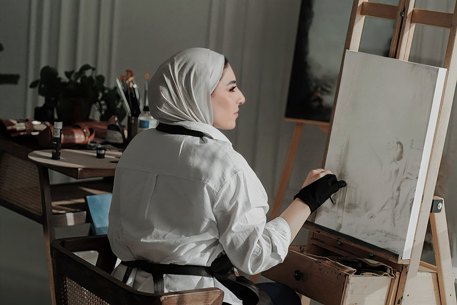 Following her graduation, Marwa worked as a freelance graphic designer, collaborating on creative projects that refined her understanding of composition, color, and visual storytelling. In time, her path led her back to her first love — painting. Embracing oil and mixed media, she returned to the tactile and emotional language of fine art, where intuition guides every brushstroke and silence becomes an essential part of the narrative.